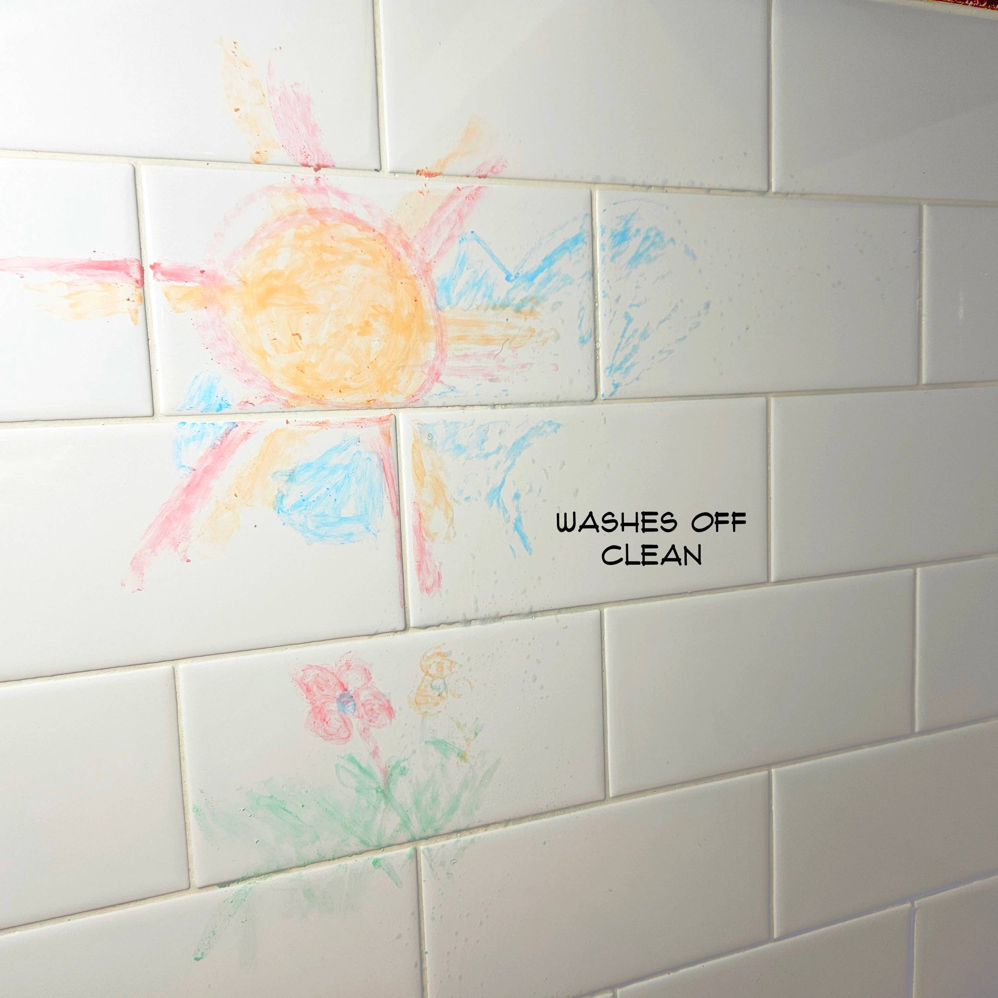 Make bathtime creative and educational with washable Bath Crayons. Kids will be happy to bathe while drawing or working on letters and numbers. Colors are strong and bright but wash off tile and grout completely.